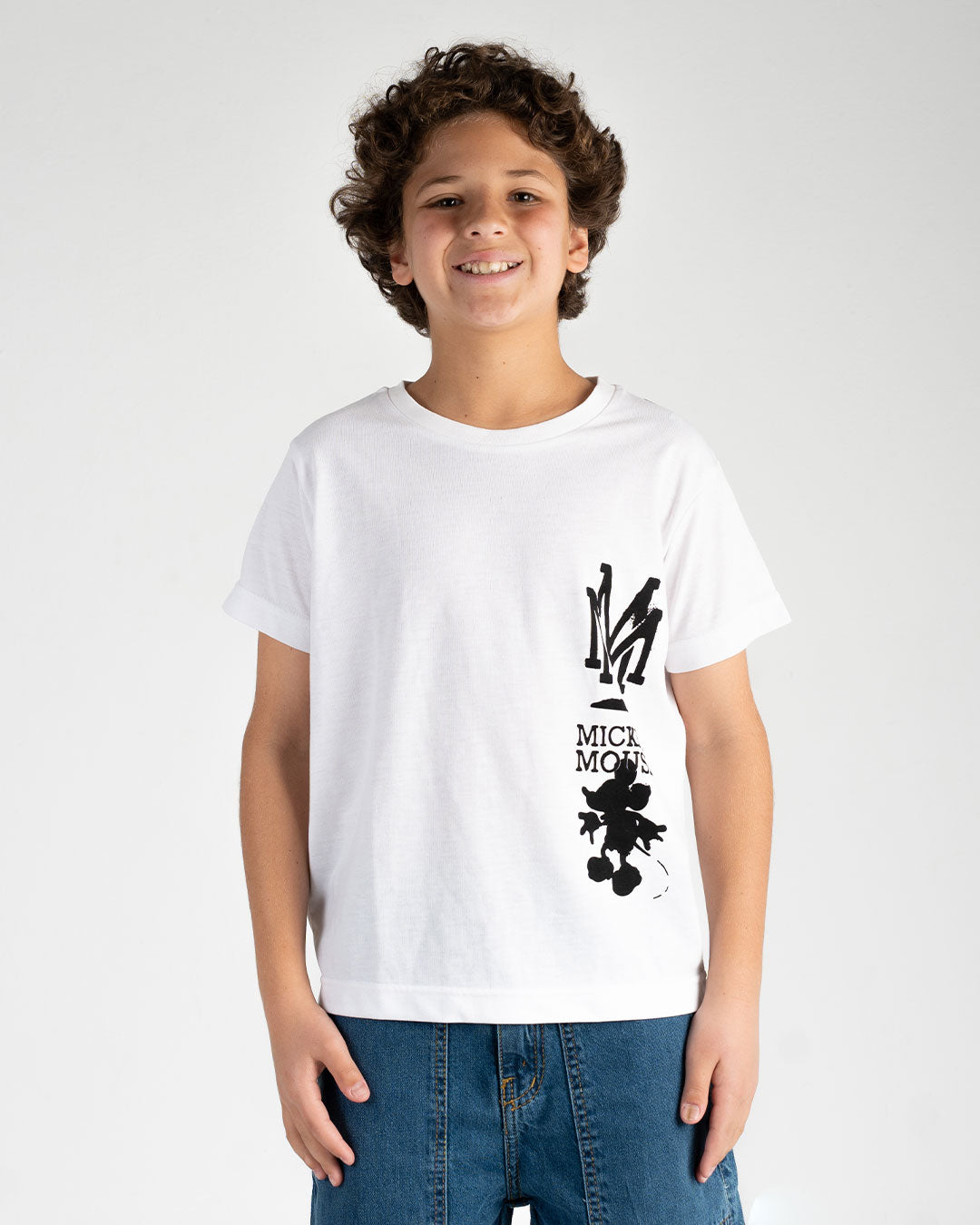 تي شيرت أبيض أنيق مطبوع عليه رسومات على الأمام والخلف مصنوع من القطن الناعم مع رقبة دائرية وأكمام قصيرة لمظهر مريح. القماش: قطن المقاس: عادي